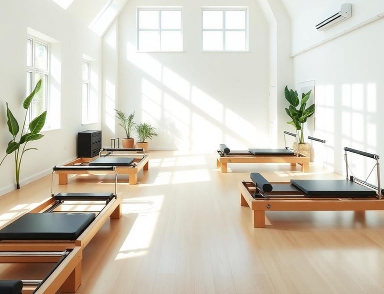 Wear comfortable, fitted athletic clothing that allows you to move freely. Pilates is practiced barefoot or in grip socks. Avoid loose clothing that might get caught in the equipment.